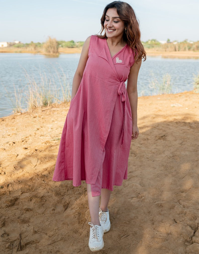 Bubblegum Pink Wrap Dress Sale priceRs. 1,800.00