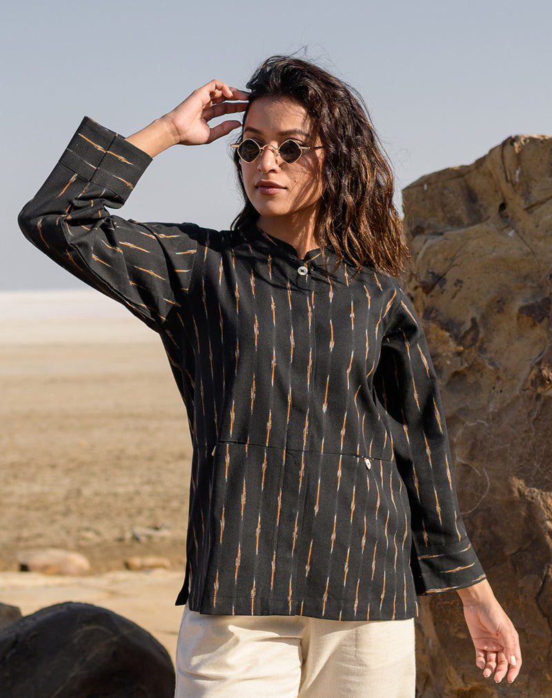 A bold classic with functional details, the Ikat Blackout Shirt brings together heritage weaving and thoughtful design for a modern, versatile look.