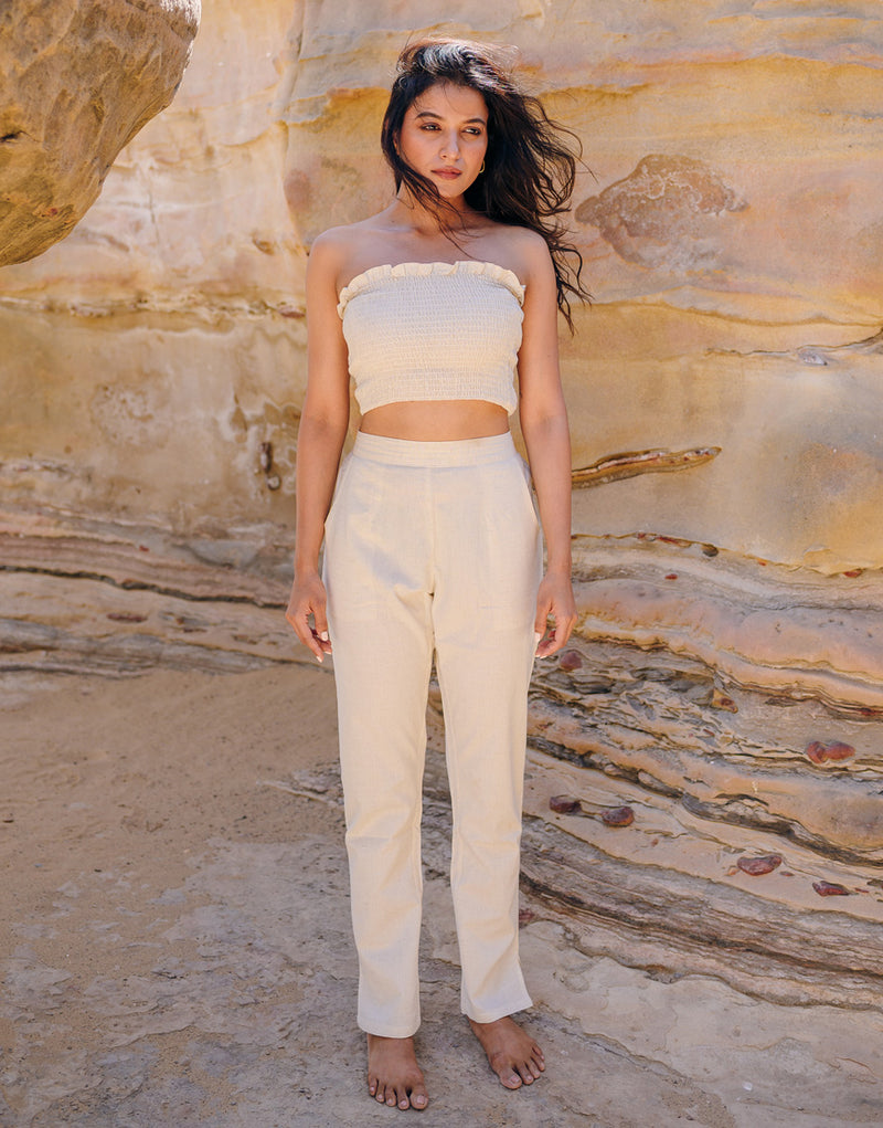 Khadi Cream Cotton Straight Pants Sale priceRs. 800.00