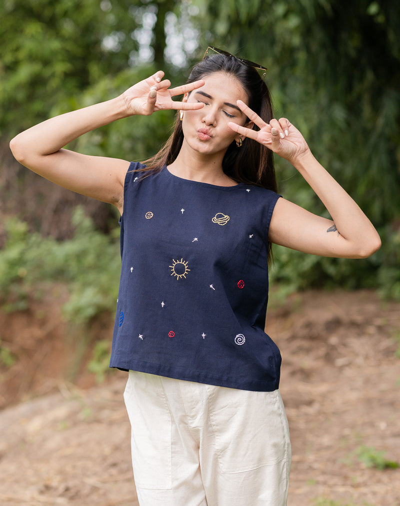 Navy Blue Crop Top