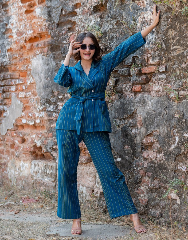 Peacock Blue Blazer Co-ord Set Sale priceRs. 2,050.00