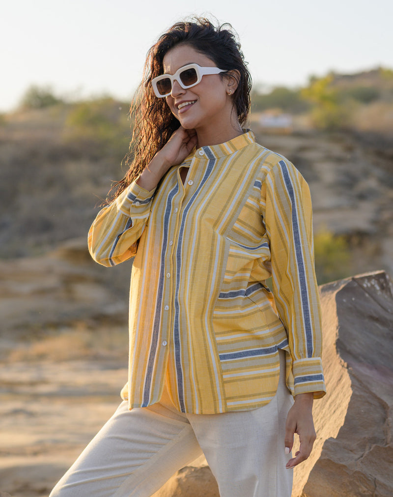 Bright, breezy, and beautifully handwoven — the Sunshine Sootra Shirt is a celebration of light and ease, perfect for sunlit days and slow living.