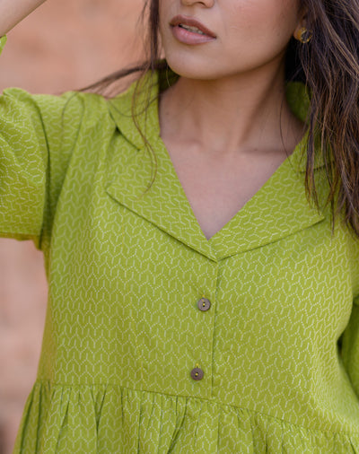 - Neckline: V-neck with hand-stitch embroidery detailing